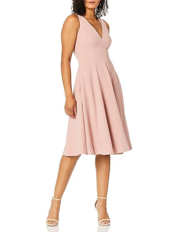 Dress the Population Women’s Catalina Solid Sleeveless Fit and Flare Midi Dress