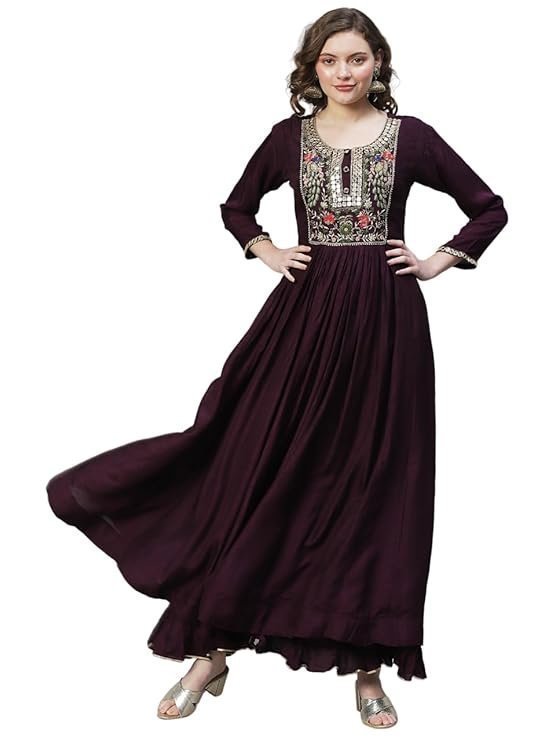 • fashor Women’s Cotton Floral Hand Embroidered Flared Maxi Dress