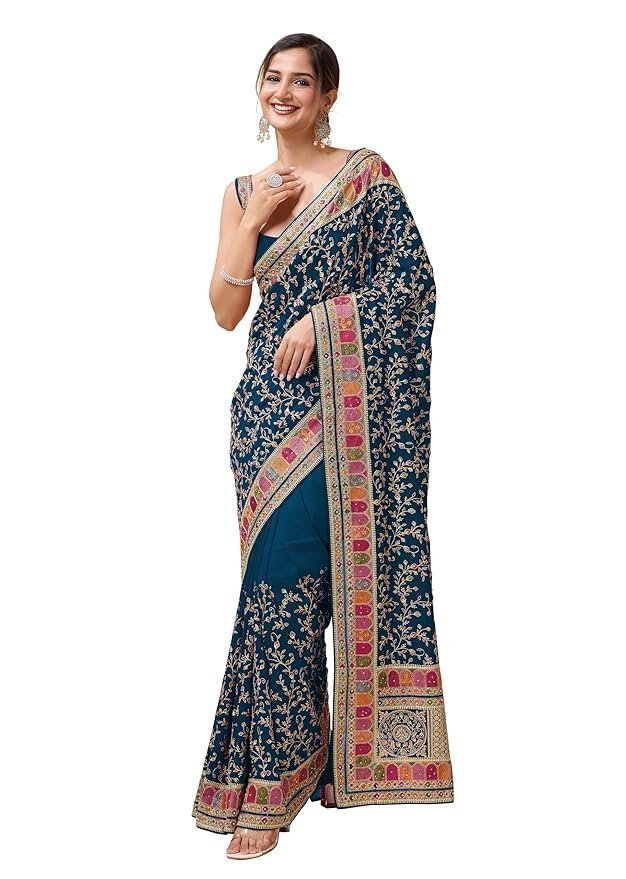 - Package Contents: 1 Saree with Unstitched Blouse Piece